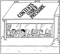 Students milled about stretching and groaning, wondering about the old guy with no calculator. They entered the room reluctantly, sideways almost, finally totaling 22. Even though it was a practice test, they had arrived with game faces. Today's results would, after all, predict their success on the SAT, estimate their value to society, and possibly be tattooed on their foreheads for access or denial to public buildings.